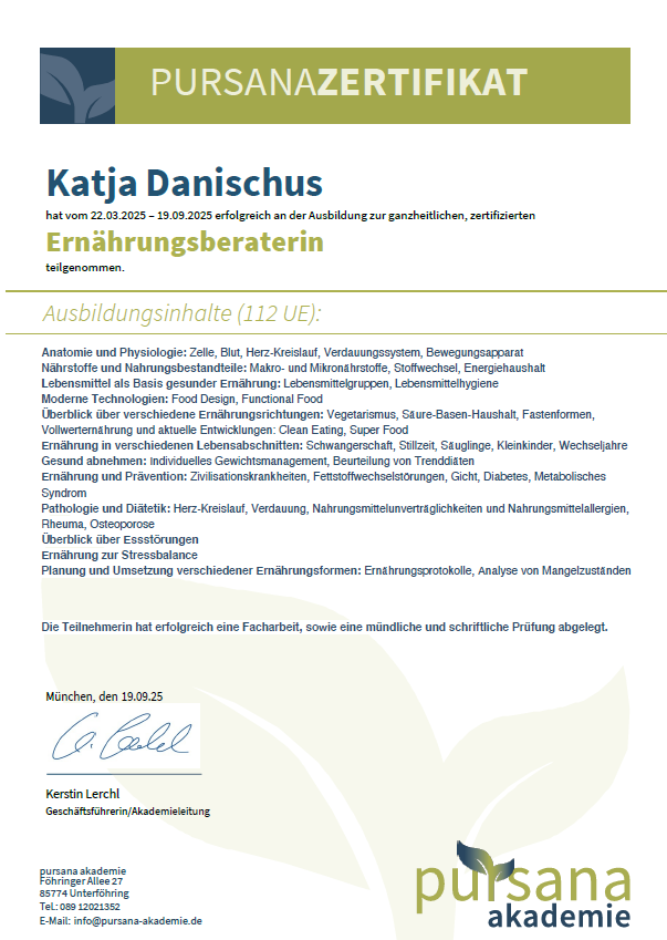 Durch mein jahrelanges Selbststudium und die Eigenerfahrung in der Ernährungsberatung und Coaching konnte ich mir in den vergangenen Jahren schon einen großen Wissensschatz aneignen.